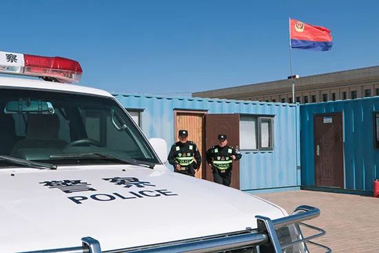 驅車從內蒙古自治區阿拉善盟巴彥浩特向北出發,車程430公里,終于抵達了中蒙邊境烏力吉口岸。在一座建筑工地的背后,一排整齊的集裝箱映入眼簾,在以灰黃為主色調的世界里,藍色的集裝箱顯得有些突兀。屋頂上飄揚著警旗,這里是烏力吉口岸邊境派出所。