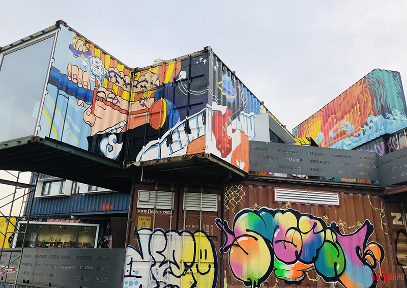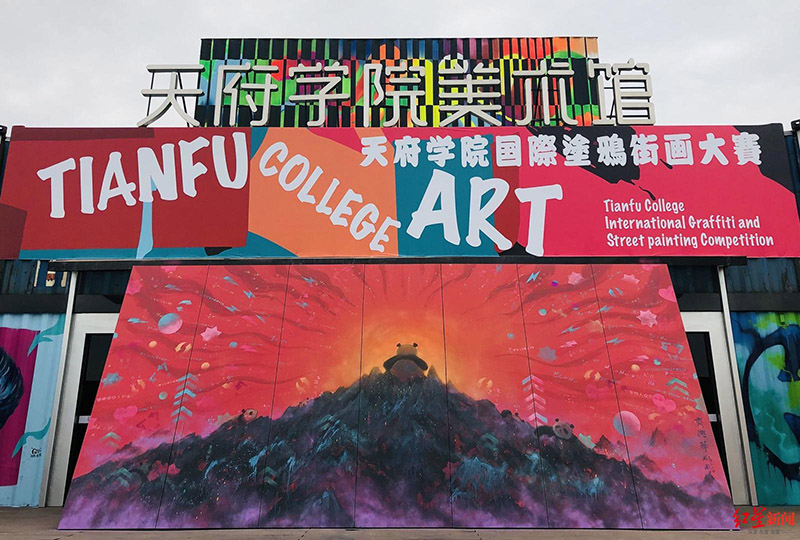 本次大賽的作品展示現(xiàn)場(chǎng),是全國(guó)首座由78個(gè)集裝箱組成的西財(cái)天府學(xué)院美術(shù)館。其獨(dú)立而另類(lèi)的建筑構(gòu)成和別具一格的外形,與基因中自帶奔放氣質(zhì)的涂鴉和街畫(huà)藝術(shù)相得益彰。大賽中入圍“上墻創(chuàng)作名單”的作品,就涂繪在這些集裝箱空間的外部。