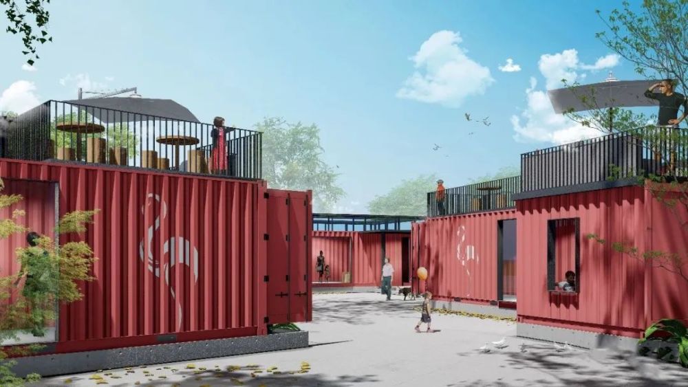 限定命題激發了設計師們的創作靈感,并對集裝箱式建筑做了深入分析與研究。初期的方案嘗試多集中在集裝箱的拼接與構建上,使之形成有趣味化的空間,但這又與其他項目沒有太多差異化。于是,設計師們開始從更宏觀的場地文化著手,野生動物王國的獨特主題性;并探索集裝箱的其他特色“密閉的方塊空間”、“五顏六色”、“像兒童喜愛的積木玩具”。《叢林中的新“動物之家”》主題逐漸浮現出來。