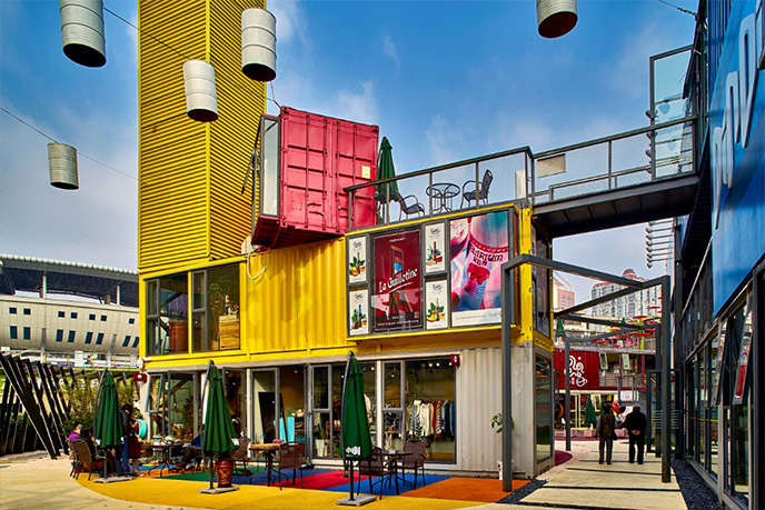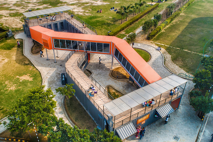 Cafe Infinity學生中心,交叉的彩色集裝箱